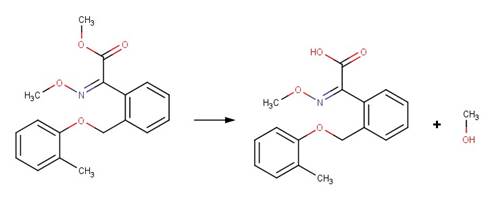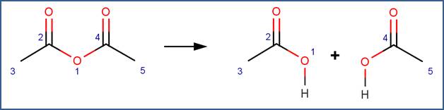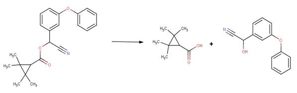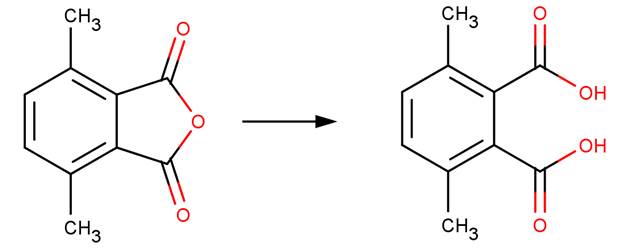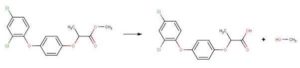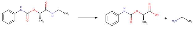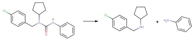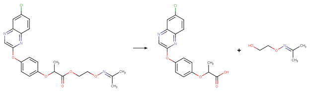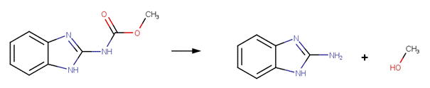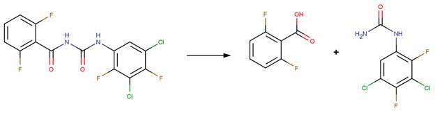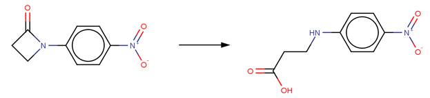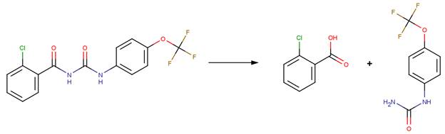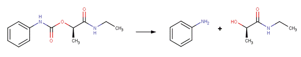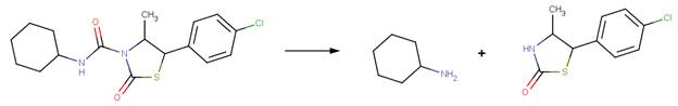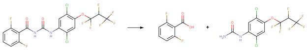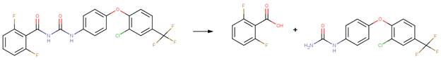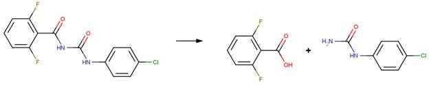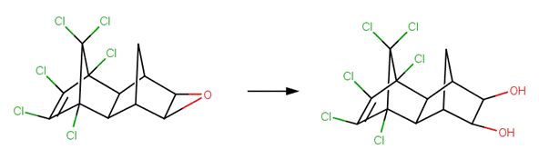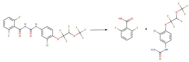 Examples are provided for each reaction scheme in the library.  As is the case for the reaction schemes themselves, the example reactions do not show all of the reactants and products involved in the hydrolysis reaction.  The example chemical is shown as the only reactant, and the products are the major hydrolysis products reported in the study.  These example transformations from the peer-reviewed literature and government regulatory reports were used to test the reaction schemes in the library.