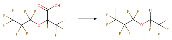 Decarboxylation: Alpha hydroxy fluorotelomer carboxylic acid to fluorotelomer aldehyde