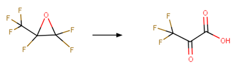 Hydrolysis: Perfluorinated epoxide to beta keto carboxylic acid