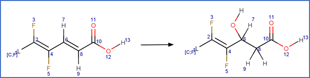 Hydroxylation: Unsaturated fluorotelomer 2,4-dienoic acid to beta-hydroxy fluorotelomer acid