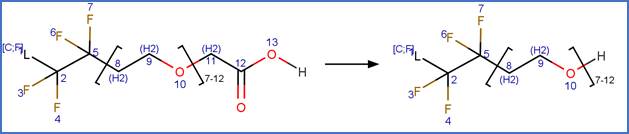 · 2H,8H-2,8-PFUDoA (Arakaki et al., 2010) Note that this transformation is not included in the proposed biodegradation pathway shown in Figure 1; however, in the discussion section, Arakaki et al (2010) state “cleavage probably requires oxidative reactions such as epoxidation of the C=C double bond”.
