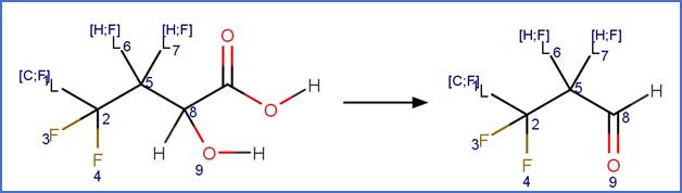 Decarboxylation: Alpha hydroxy fluorotelomer carboxylic acid to fluorotelomer aldehyde