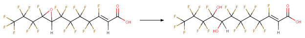 · 2H,8H-2,8-PFUDoA (Arakaki et al., 2010) Note that this transformation is not included in the proposed biodegradation pathway shown in Figure 1; however, in the discussion section, Arakaki et al (2010) state “cleavage probably requires oxidative reactions such as epoxidation of the C=C double bond”.