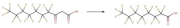 Hydrolysis: Perfluorinated epoxide to beta keto carboxylic acid
